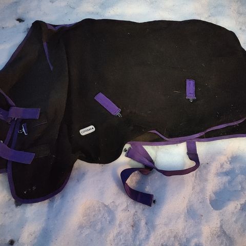 Tarpeettomana pesty ja siisti Horseware Amigo ohuempi fleece ristivöillä. Muuten tosi siistissä käytetyssä kunnossa, mutta sivulla maalitahra, ja edessä tarran vieressä repeämä.