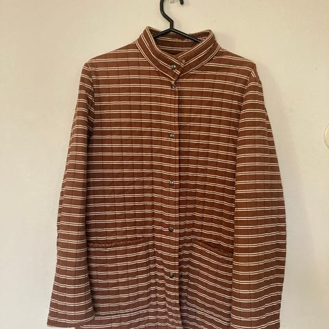 Upea 70-luvun Vuokko-merkkinen takki. Takissa lukee kokona 40, mutta takki vastaa enemmän nykypäivän kokoa M. Takin vanu on valmistettu polyesteristä.