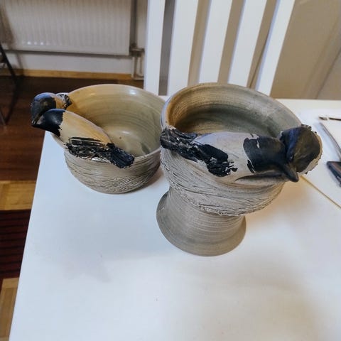 Juurista punottu pöllö suojaruukuksi ruukkukukalle