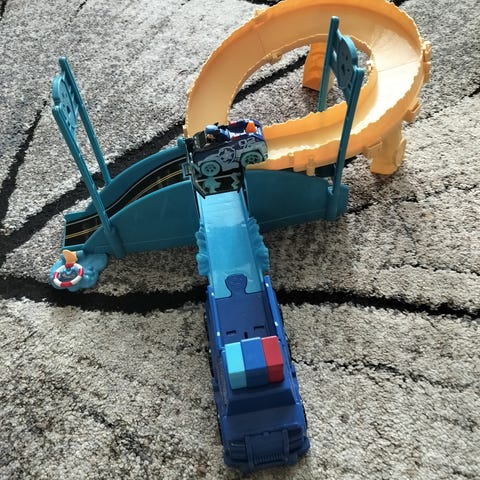 Myydään Ryhmä Hau Chase ja Marshall leikkirata, sisältäen kaksi hahmoa. Sopii yli 3-vuotiaille lapsille. Väri sininen ja punainen. Materiaali muovi. Lelussa on 4,6 m pitkä rata.