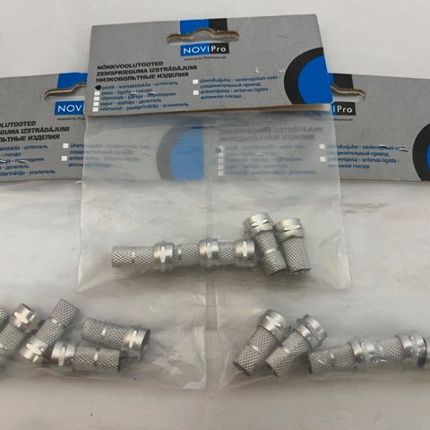 Uusia F-Liittimiä. 10 kpl per pussi, pussit avaamattomia. Yhteensä 60 kpl. Kaikki yhteensä 20 €. Voin lähettää. Postikulut lisätään hintaan.