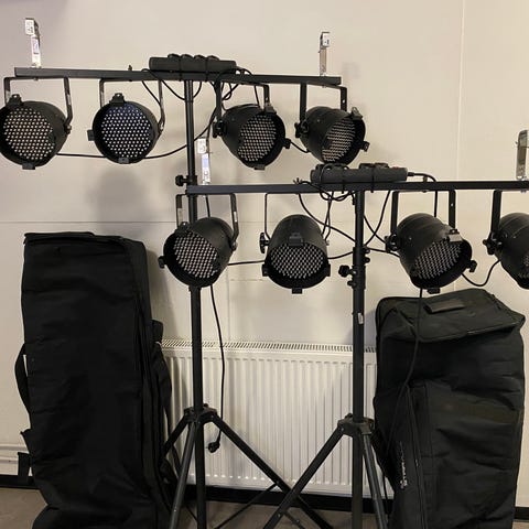 Asennusclampit asennettu jokaiseen lamppuun niin saa trusseihin kiinni suoraan.