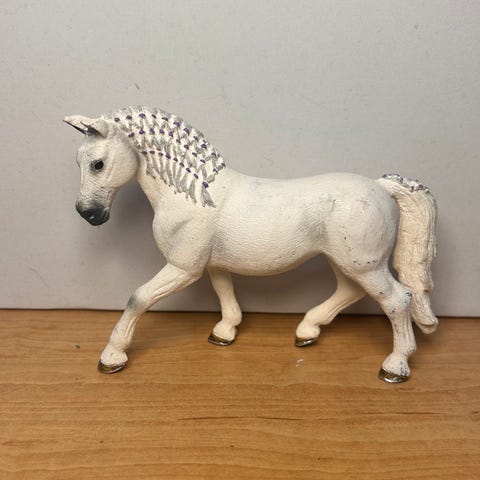 Myydään Schleich Tinker tamma, vuosiluku 2014. Hevonen on hyvässä kunnossa, mutta joitain käytönjälkiä löytyy, ne näkyvät kuvissa.