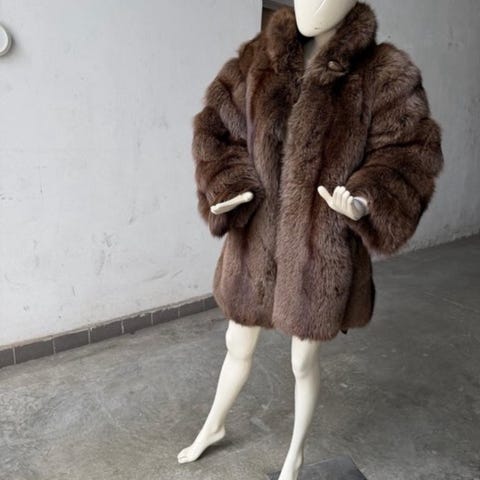 Pitkä, kaunis ja lämmin sininen turkki, mikä Ritva Silventoisella teetetty.