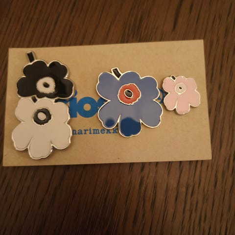 Myydään Marimekon Unikko-kuvioisia pinssejä.