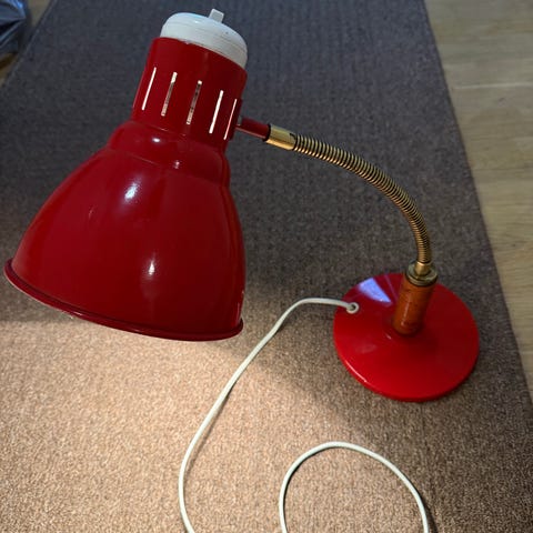 Pöytävalaisin kahdelle lampulle, jokaisessa oma johtokytkin. Korkeus 75 cm. Luultavasti 50 vuotta. Pronssijalusta, kolme kristallipilaria. Kunto on täydellinen.