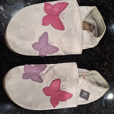 Kerran käytetyt jumppa-/sisätossut sukkavarrella ja yksisarviskuvalla.
