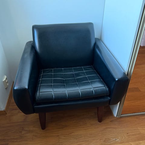 Myydään kaunis ja laadukas entisöity vintage-lepotuoli, arviolta 60–70-luvulta. Tuoli on verhoiltu aidolla nahalla entisöinnin yhteydessä, ja nahka on paksua, pehmeää ja erittäin hyväkuntoista.