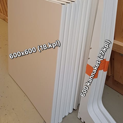 Hyllytasot, koko: leveys*syvyys senttimetreissä, hyllyreunan vahvuus n kolme senttiä:
