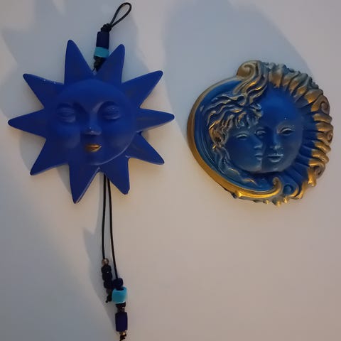 Myydään kuvissa olevat kukkakuvioidut emaloidut messinkiset seinäkoristeet.
