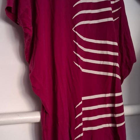Käyttämätön, lahjaksi saatu. Tummansininen pohja. 3/4 hihat. Olka-helma 109 cm. Kainalo-kainalo 55 cm.