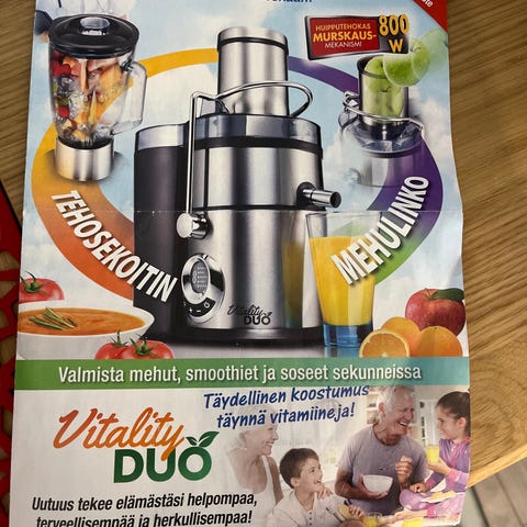 • 2-in-1 laite: tehosekoitin + mehustin