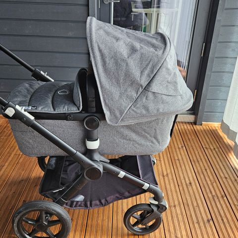 Bugaboo Fox yhdistelmävaunut harmaalla kankaalla. Mukaan tulee vaunukoppa, istuinosa, adapterit turvakaukaloon (sopii ainakin be safe turvakaukaloon)