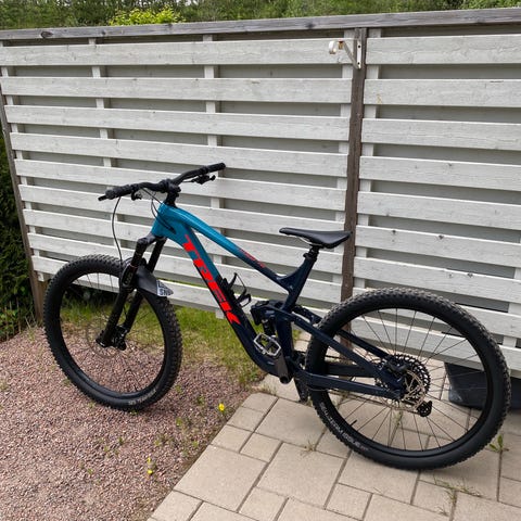 Trek täysjousitettu maastopyörä miehille rungon koko L. Edessä 140mm jousto ja takana 130 mm. Pyörällä ajettu noin 500km. Ainoat osat mitä on vaihdettu ovat pienet takarattaat. Pyörä on hyvässä kunnossa. Yksityisviesteissä voin laittaa tarkemmat speksit ja kuitin kuvan.