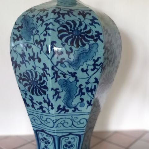 Myydään näyttävä ja todella kookas sinivalkoinen vaasi. Vaasi on laadukasta keramiikkaa/posliinia ja painaa 18 kg, joten kyseessä on järeä ja arvokkaan oloinen sisustusesine.