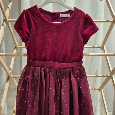 Siistikuntoinen cubus mekko koossa 116. Tässä valossa ainakaan en huomaa moitteita.