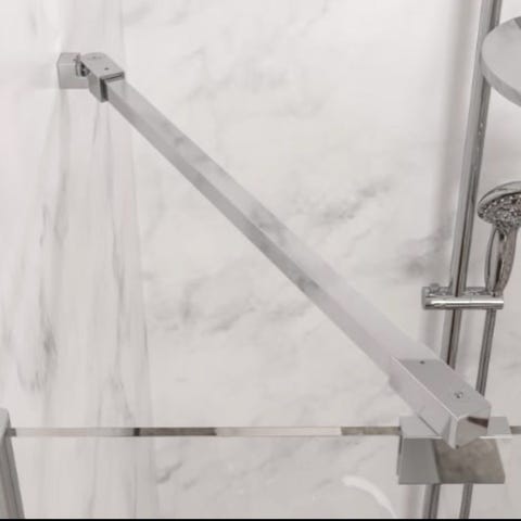 Suihkuseinän vinotuki, sopii 6-8 mm paksuisille suihkuseinille. Merkki Hietakari. Kromattu. Kokonaispituus 43 cm. Hietakarin hinta 74€.