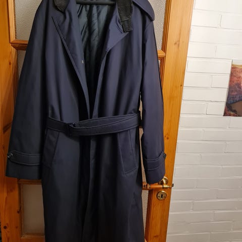 Miesten pitkä harmaa takki, Oratop trenssi, koko C 56 made in Finland, vuori kevyt vanu