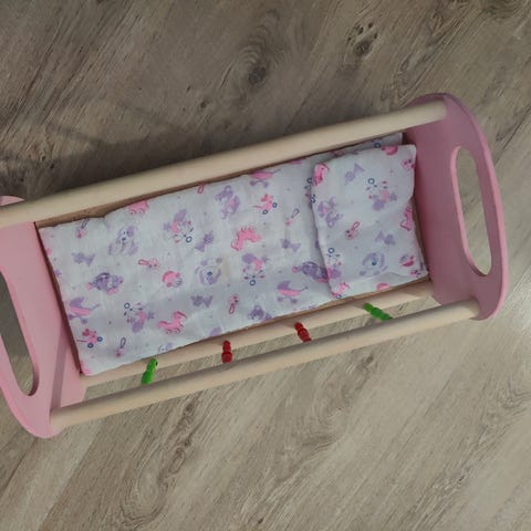 lastenhuoneen nuken sänky /säilytysteline, valkoinen, valmistettu metallista ja kankaasta. Soveltuu nuken käyttöön tai lastenhuoneen järjestämiseen ja pienten tavaroiden säilytykseen.