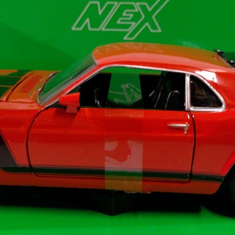 Ford Mustang GT Mach III pienoismalli punaisena. Malliauto esittää Mustang GT Mach III -mallia avoautona. Sopii keräilyyn tai esillepanoon