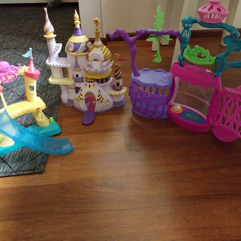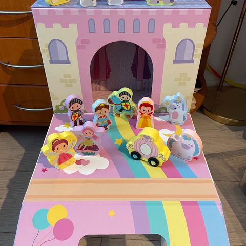 Myydään ok kuntoinen leikkilinna. Rakentuu eri kokoisista osista, tukevaa pahvia. Osa palasista rikkoontunut, mutta pysyy erittäin hyvin kasassa.