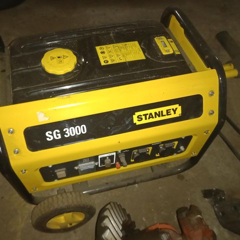 Stanley E-SG 2200 generaattori, teho 2200 W, 230 V, 50 Hz, 8,7 A, 1-vaiheinen. Sopii sähkön tuottamiseen erilaisiin käyttötarkoituksiin.