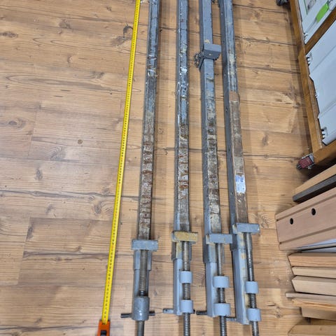 Myydään järeät puristimet jotka on integroitu tukeviin pöydänjalkoihin. Näillä saa tehtyä vaikka isommatkin liimahommat!