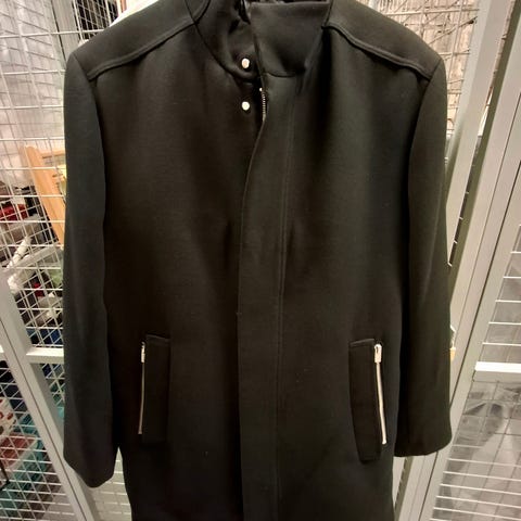 Hyväkuntoinen miesten musta villakangastakki. Vetoketjullinen kaulurivuori irrotettavissa.
