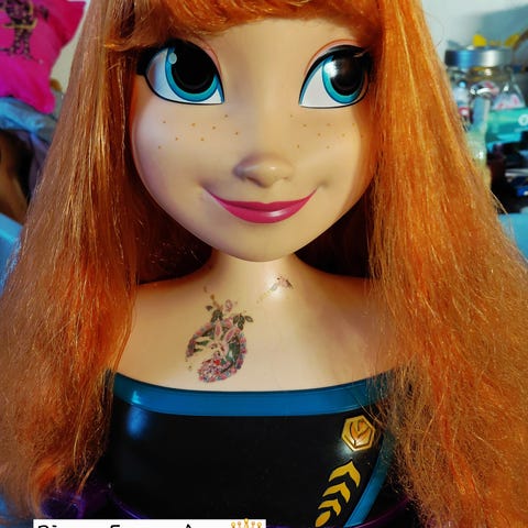 Disney Frozen hiusharja ja meikkipussi. Hiusharjan pää on tähti-muotoinen ja siinä on Elsa-hahmo sekä perhoskuvioita. Meikkipussi on sininen ja siinä on Anna ja Elsa -hahmot. Pussi on pehmeä ja tilava, sopii pienten tavaroiden säilytykseen.