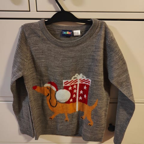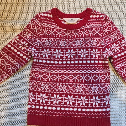 Hyväkuntoinen vähän käytetty poikien jouluneule, ostettu USA:sta. 5-vuotiaan koko. Käy varmasti pienemmällekin. 55% ramie, 45 % puuvilla.