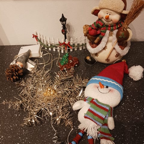 Myydään kuvan joulukoristeet. Mielellään nouto.