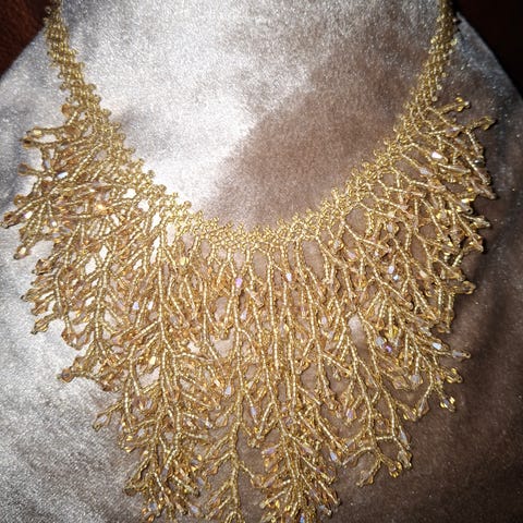 Uusi, näyttävä ulkomailta tuotu käsintehty kaulakoru. Helmiä sekä puuta ja kankainen korupussi. Väri terrakotta, kangaspussi aniliini.