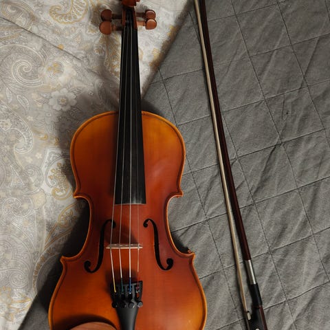Myydään 3/4-viulu, sisällä teksti "Antonius Stradivarius. Cremonensis faciebat anno 1713 Made in Czechoslovakia". Kielet ja talla ehjät, mutta irrallaan, sillä ei ole käytetty vähään aikaan. Sisältää säilytyskotelon, pehmusteen, Kun-merkkisen olkatuen sekä g-, d- ja a-varakielet.