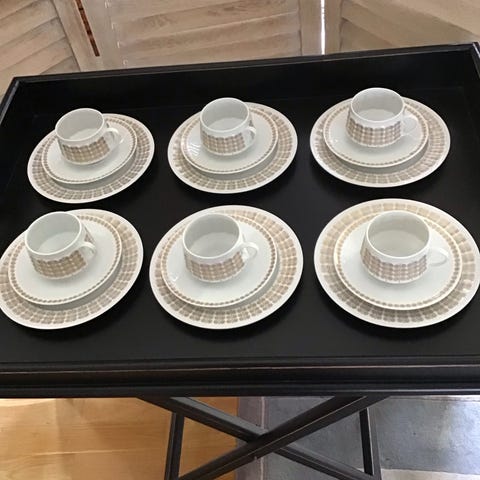 Hyväkuntoinen Arabia Pallas sarjan kahviastiasto.