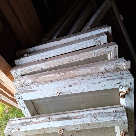 Hyvä läjä toimivia osia vanhojen ikkunoiden entisöintiin, nämä on pitkälti putsattu maaleista elikä ovat suoraan käyttöä tai uutta maalusta vaille - hienoja ja hyväkuntoisia!