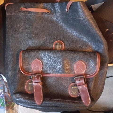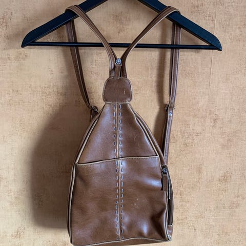 Vintage reppu. Aitoa nahkaa. Iso ja tilava. Paljon taskuja. Muutoin ehjä ja siisti, mutta kaksi näkyvää tahraa joita en ole yrittänyt poistaa.