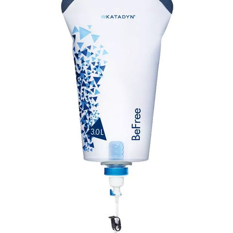 Vesisuodatin. Ei vaadi sähköä tai painevesipumppua. Suodattaa juomavettä.
