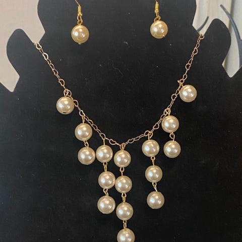 Helmikaulakoru/-nauha, rannekoru, sormus ja korvakorut. 5e/settinä