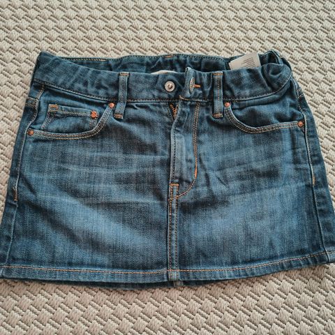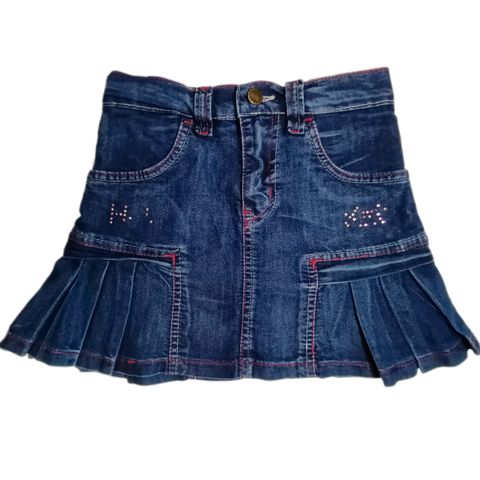 Global girl, beige farkkuhameen mallinen puuvillatvillihaame, koko 128 cm. Hameen pituus on 35 cm, vyötärön leveys on 31 cm.