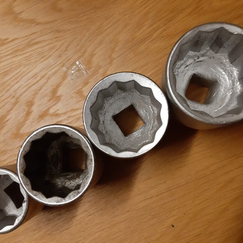 Tässä on 1/4" hylsyt 5-13mm ja 1/2" hylsyt 10-32mm, toimivat räikät, kiintolenkkejä 10-17mm, jakoavain ja papukaijapihdit. Ei Kamasaa, eikä Bahcoa.