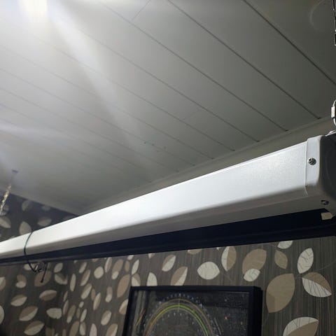 Läheltä tarkastellessa hakemalla löytää erittäin pientä pintavirhettä mutta ei haittaa mitenkään projisointiin ja kuvaan. Ei reikiä tai vaurioita. Savuton ja lemmikitön talous, ei ole ollut suorassa auringonvalossa.