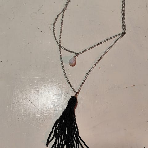 Kaksi eri pituista hopeanväristä ketjua. Molemmissa riipukset. Lyhyemmässä kimaltava musta pallo, pidemmässä metallinen härän kallo. Koru on uusi, käyttämätön ja käsityönä valmistettu. Käy loistavasti lahjaksi jouluna. Useamman tuotteen ostaja voi ehdottaa edullisempaa hintaa. . Mieluummin ilman toridiiliä, mutta diililläkin onnistuu. Ostajalle postikulut. Nopeat kaupat plussaa.