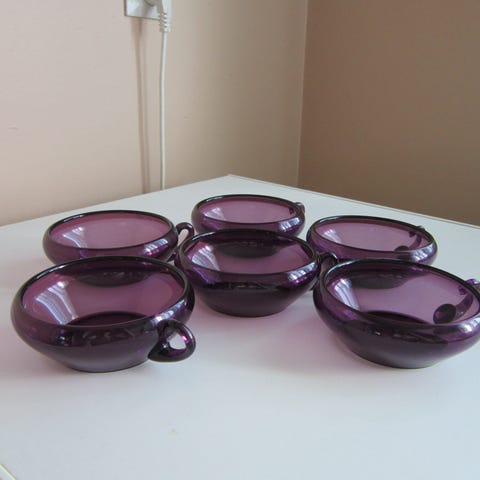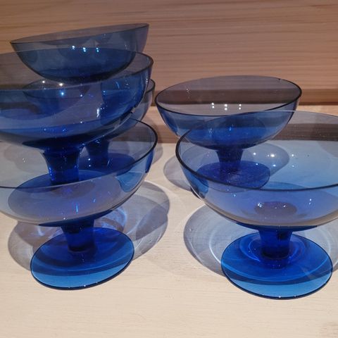 Kumelan jälkiruokakulhot. 6 kpl. Valmistettu 1950-1960 luku. Korkeus 8 cm, halkaisija 9,5 cm. Hinta yhteensä 30 e.