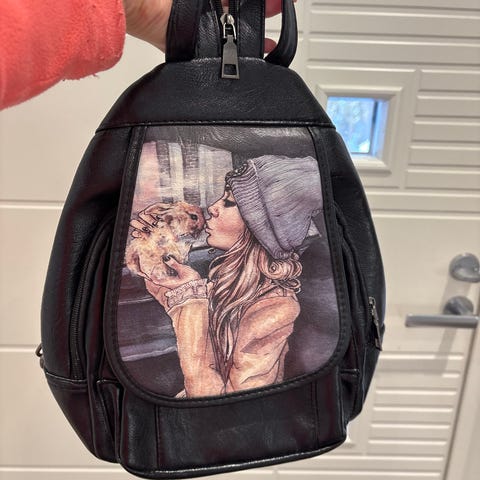 Pinkki pupureppu. Hyvä kunto, valkoisessa nenässä vähän pinkkiä väriä, kuten kolmannesta kuvasta näkee. koko noin 36 x 25 cm jalat mukaan lukien. Henkari ei kuulu kauppaan.