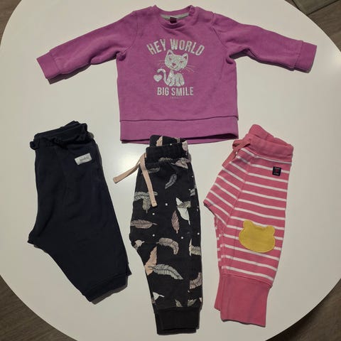 Uudenveroinen, ihanan pehmoinen asukokonaisuus, jossa fleece-housut ja vetoketjulla varustettu neulottu takki, jossa sisäpinta lämmintä karvaa. Pesty vauvaystävällisellä pesuaineella.