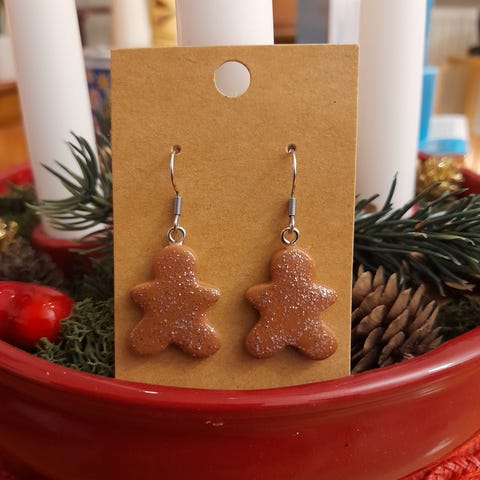 Uudet ja käsintehdyt pipariukko korvakorut, polymeerimassasta. Nikkelittömät. Pipariukon koko: leveys 1,9cm, korkeus 2,5cm, paksuus n. 3mm.