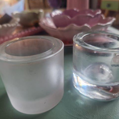 2 erilaista sinisävyistä Iittalan Aalto-tuikkua. Kumpikin täysin ehjä ja siistissä kunnossa. Korkeus n. 5,5 cm, suurin halkaisija n. 10 cm. Hinta 12e/kpl. Lähetyskin onnistuu.