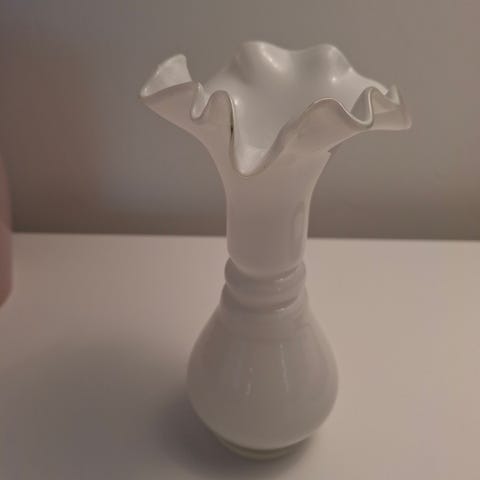 Myynnissä kaunis ja elegantti turkoosinsininen opaliinilasi maljakko. Tämä kappale on aito vintage-löytö, luultavasti peräisin Ranskasta tai Italiasta (esim. Portieux Vallerysthal, Opaline Florence tai Murano), valmistettu arviolta 1950- tai 1960-luvulla.