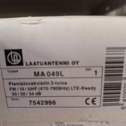 Laatuantenni Oy DC 015L antennisuodatin, LTE-yhteensopiva. Sopii I-FM/II/UHF taajuuksille 470-790 MHz. DC-liipiyhteys on 0,5 A. Tuote on tarkoitettu antennijärjestelmiin.