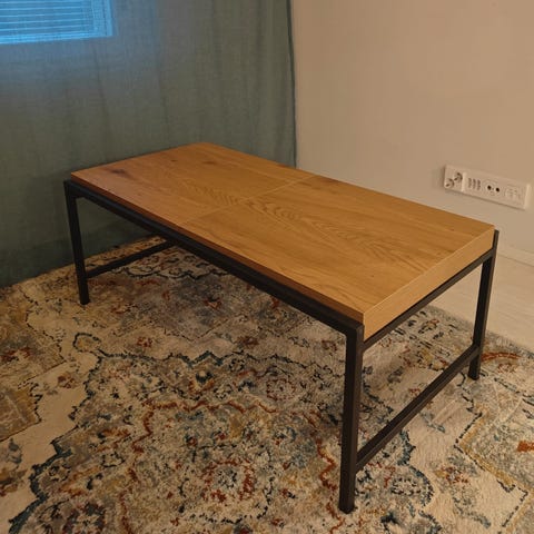 Myydään sohvapöytä jossa pöytätasot ovat käännettävissä. Hyvä kuntoinen